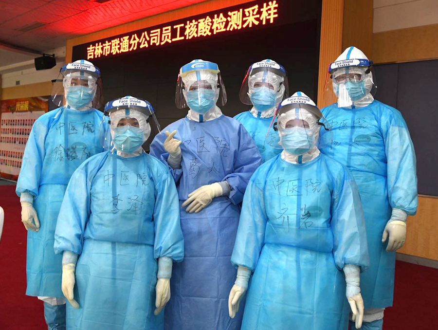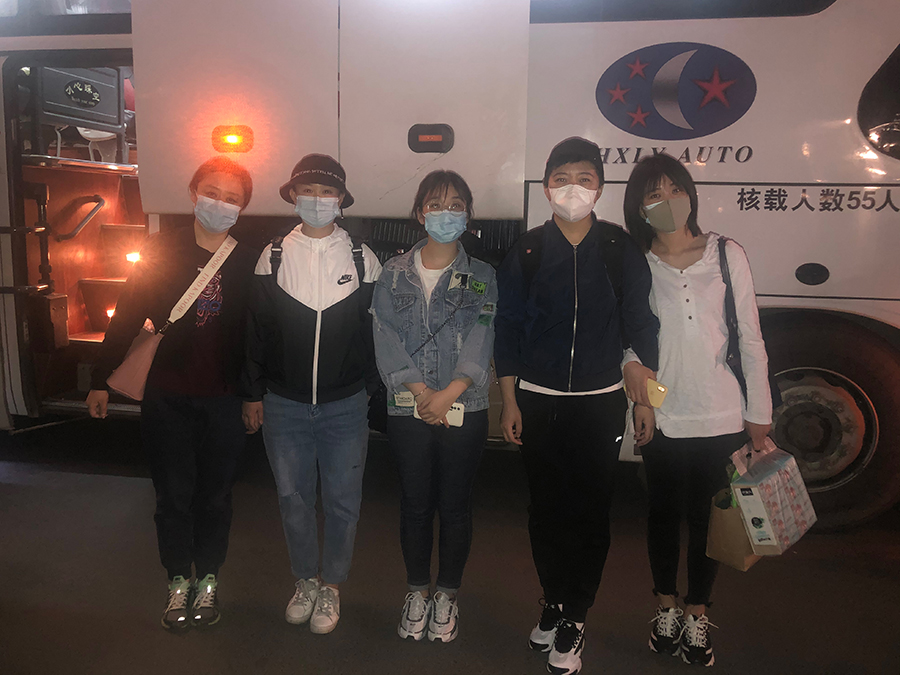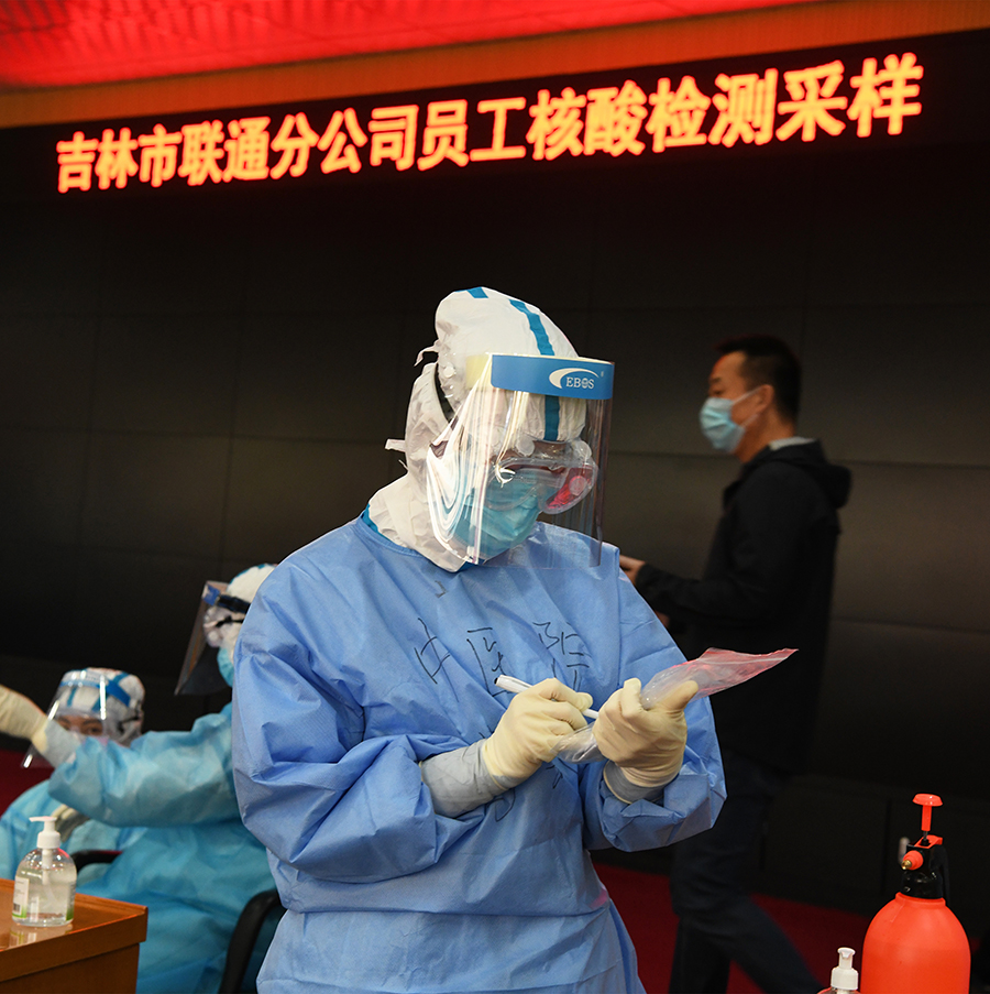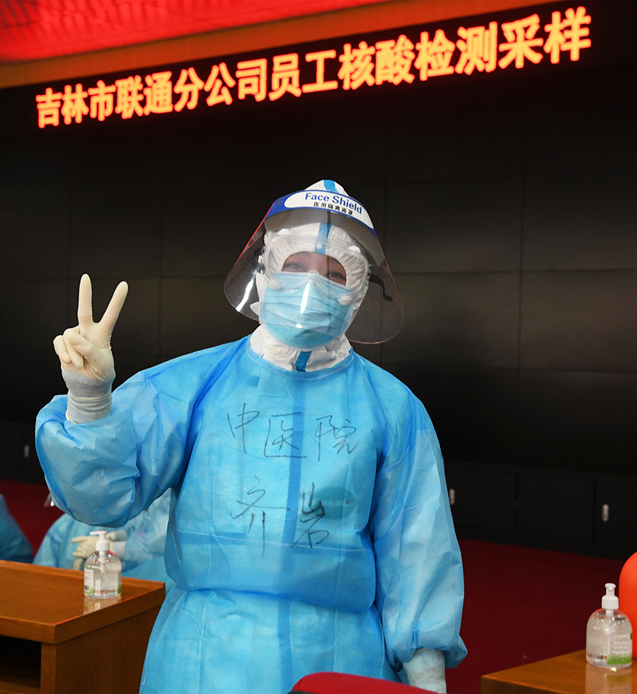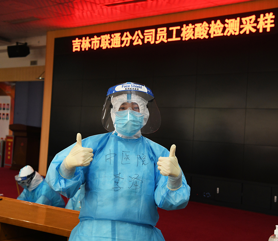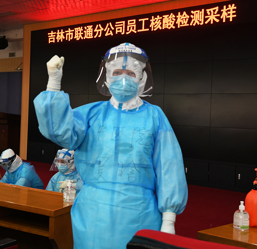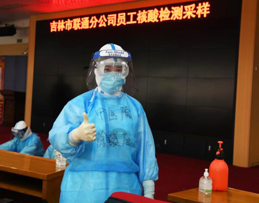 吉林市船营区是6位天使支援的对象。因为争取在最短的时间内为更多人检测,所以任务随时会来。进社区、入村屯,常常是白+黑,凌晨两三点钟回来是常事。另外,入户检测更考验体力。在三级防护下爬楼入户,最大的感受是喘不上来气,完成一次检测任务,衣服都湿透了。在汗渍的浸泡下,有的队员皮肤过敏,脖子、脸上都红了。但不管怎样困难,6位天使都努力坚持,为吉林市提供强有力的支持。不负领导重托,6位天使圆满完成支援任务,于5月22日返回长春。