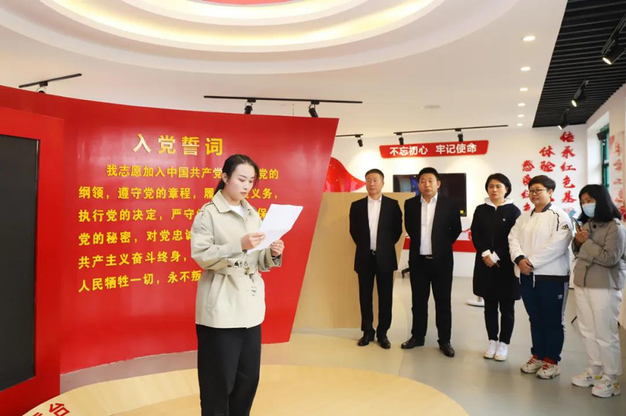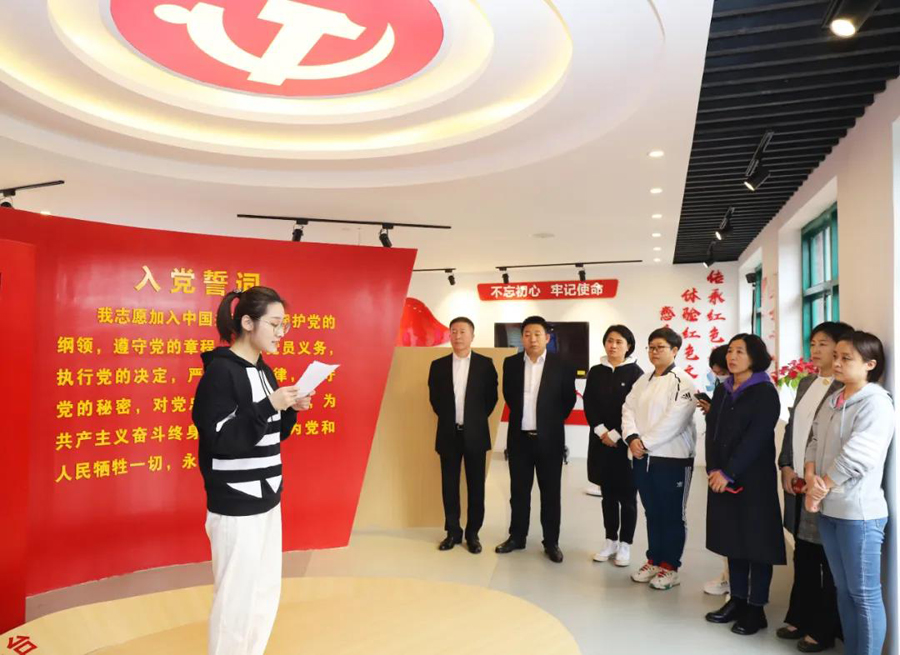 入党誓词,是党员对党和人民做出的庄严承诺。全体党员和入党积极分子面对鲜红党旗,右手握拳,一字一句许下了铮铮誓言。