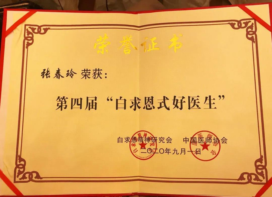 今年年初,新冠肺炎疫情暴发广大医护人员坚决贯彻习近平总书记重要指示批示精神和党中央各项决策部署义无反顾冲向疫情防控第一线为表彰先进,弘扬正气经中国医师协会和白求恩精神研究会认真评选红桃视频 门诊办、治未病中心主任张春玲荣获第四届“白求恩式好医生”称号。