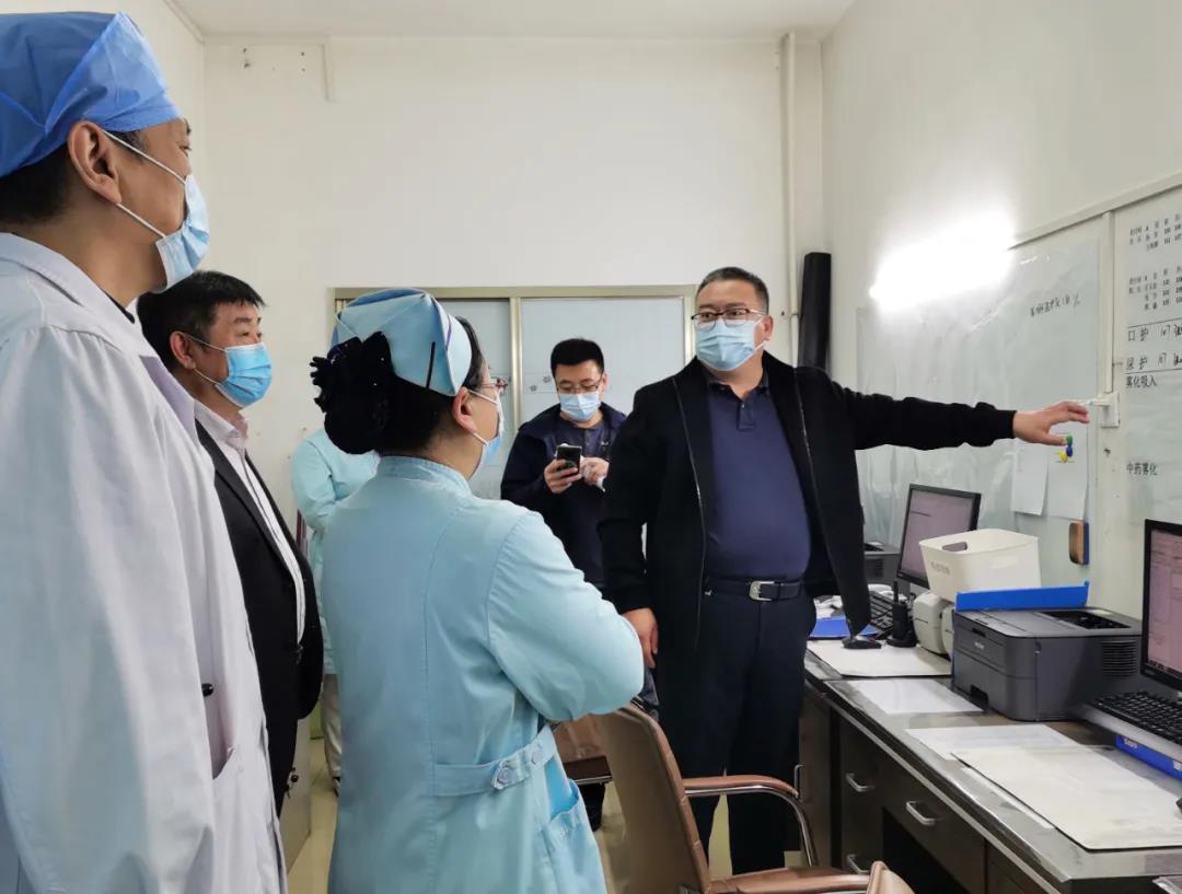 孙良金与医院工会主席张保平、党办主任王雪姣、东部党支部书记张国以及相关职能科室负责人、党员群众面对面,了解科室发展情况和工作中急需解决的问题。