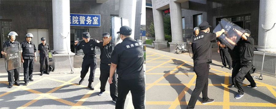 为加强防范,岗位执勤人员配发了钢盔、盾牌等防护器材;在门诊、病区张贴防火、防盗、防医托警示牌,安排保安巡逻;设置安保器材装备点,提高突发事件时快速反应速度;“毒麻精放”药品、易燃易爆物品等存放在保险柜、防爆柜、防腐蚀柜等处,专人专账管理。
