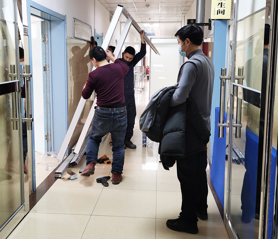 前来支援的长春市儿童医院、长春急救中心等兄弟单位与医院东部的职工们一起更是放弃了周末的休息,全权负责起院部改造和病人安置工作,加班加点、以“毅”战“疫”,没有一个人退缩,没有一个人抱怨。