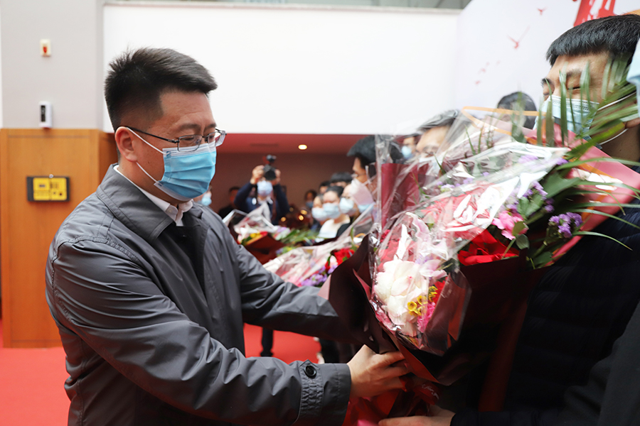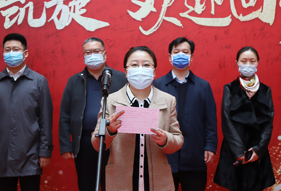 现场,长春市卫健委医政医管处副处长孙磊代表长春市卫健委向在场的33名“白衣战士”致以崇高的敬意。他希望大家能立足岗位,继续弘扬伟大的抗疫精神,当好人民的健康卫士,为健康长春添砖加瓦、为健康中国助力奋战。