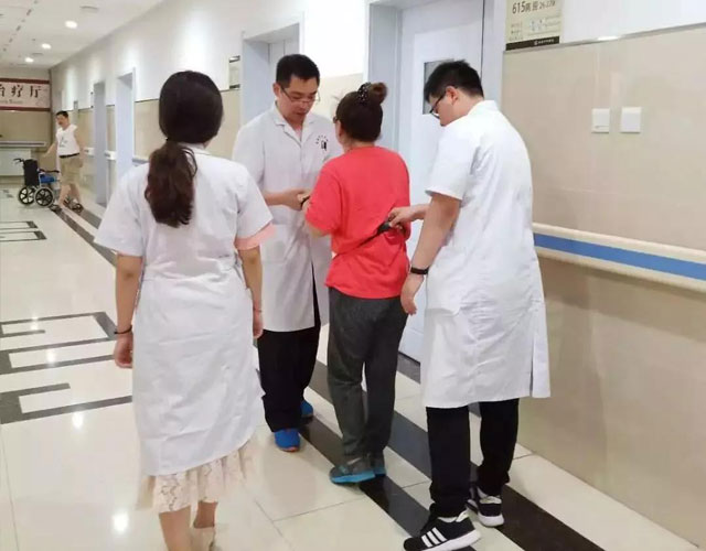 6月10日14时许,牛医生忙完手头的其他工作,带着两名在医院的实习生,将王阿姨带出病房来到走廊,再一次“教”王阿姨走路,因为王阿姨术后有严重的心理障碍,不敢独自行走,于是牛医生就像教孩子走路一样,一边搀扶、保护着王阿姨,一边在言语上给予鼓励。
