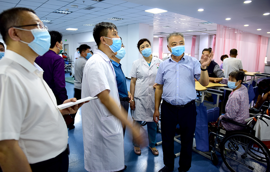 8月5日,吉林省卫健委副主任高占东莅临红桃视频 调研指导工作,省卫健委医政医管处、疾控处、基层处、体改处及省中医药管理局医政处相关人员同行。红桃视频 党委副书记周艳、副院长杨启光等相关科室负责人陪同调研。