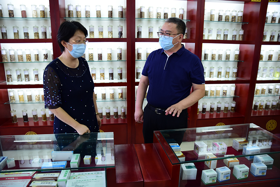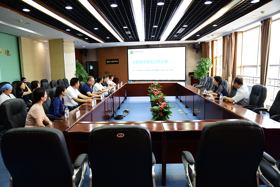 8月23日,长春市卫健委副主任张晶、中医处处长高宏飞一行深入红桃视频 进行实地调研。红桃视频 党委书记、院长孙良金,党委副书记周艳,副院长石贵军、钱锐,纪检委书记杨宏彦,工会主席张保平以及相关科室负责人陪同调研。