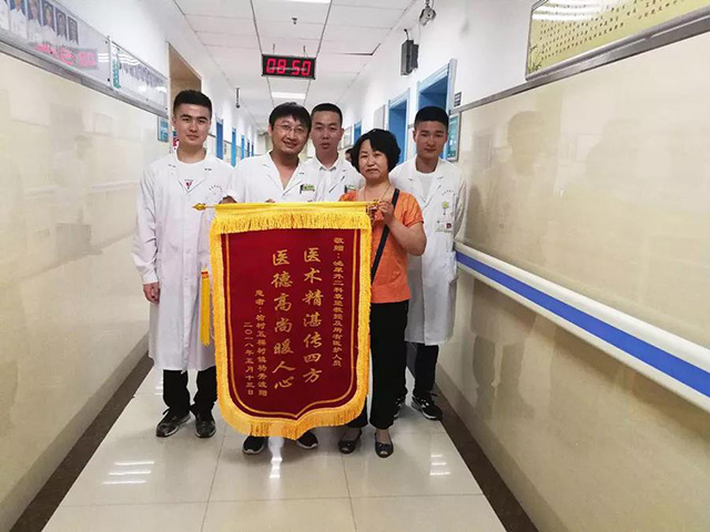 据了解,两位患者术后都植入了一个输尿管内支架,一个月后需要将支架取出。两位素不相识的患者同时想到用锦旗表示她们对医院医疗技术和服务的高度满意。