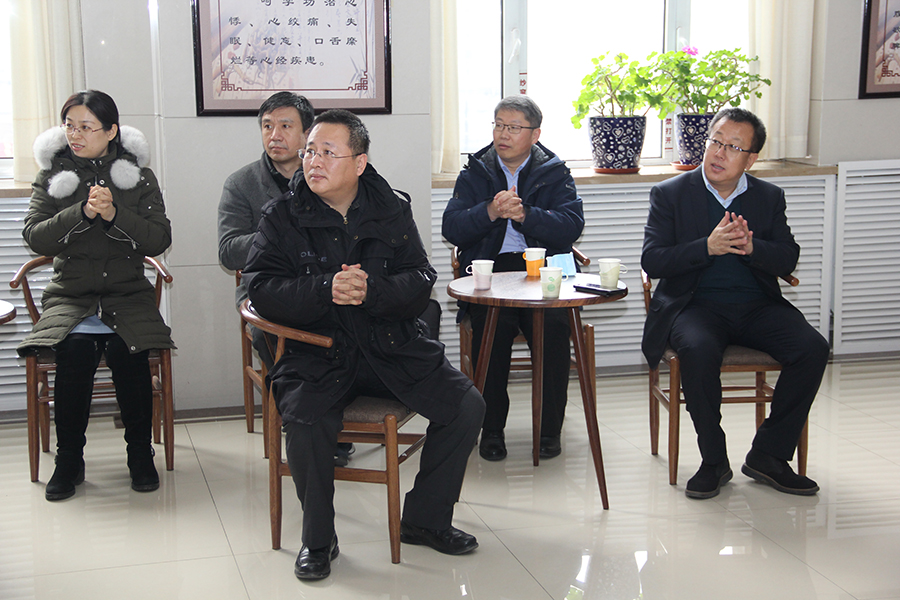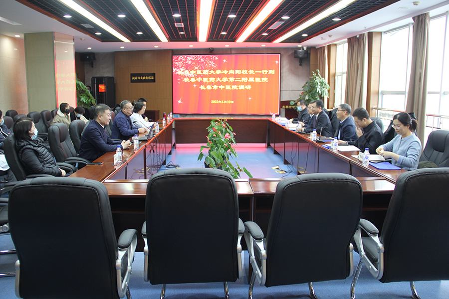 1月10日下午,长春中医药大学校长冷向阳,副校长李磊、王洪峰,校长办公室主任王兴铭,科研处处长李光哲,研究院副院长李瑞丽,教务处实践教学管理科张伟莹一行7人到红桃视频 (长春中医药大学第二附属医院)进行调研。红桃视频 党委书记、院长孙良金,党委副书记周艳,副院长杨启光、石贵军、钱锐,纪检委书记杨宏彦和总会计师桑玉梅等相关人员陪同调研。
