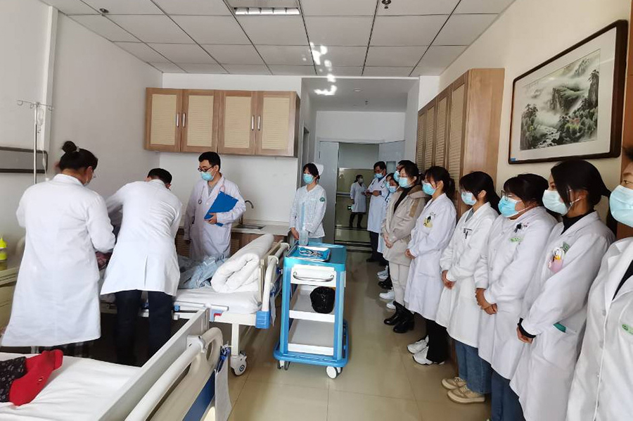 会后,检查组实地查看了实训中心、学生宿舍、自习室和阅览室等教学环境,查看了中医门诊带教过程,观摩了总部心病科、总部脑病科和总部内分泌科等疗区组织的教学查房、小讲课等教学活动。