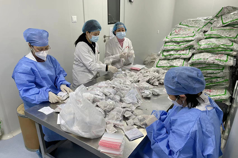 就这样,这支中医制剂团队相互鼓劲、相互照顾、拼命赶工,截至目前,制剂室先后生产出了20000盒扶正固表口服液、5000盒加味双黄连口服液、13万余人份扶正代茶饮,并已陆续投入到抗疫一线,用于救治工作,为长春市疫情防控工作做出了应有的贡献。