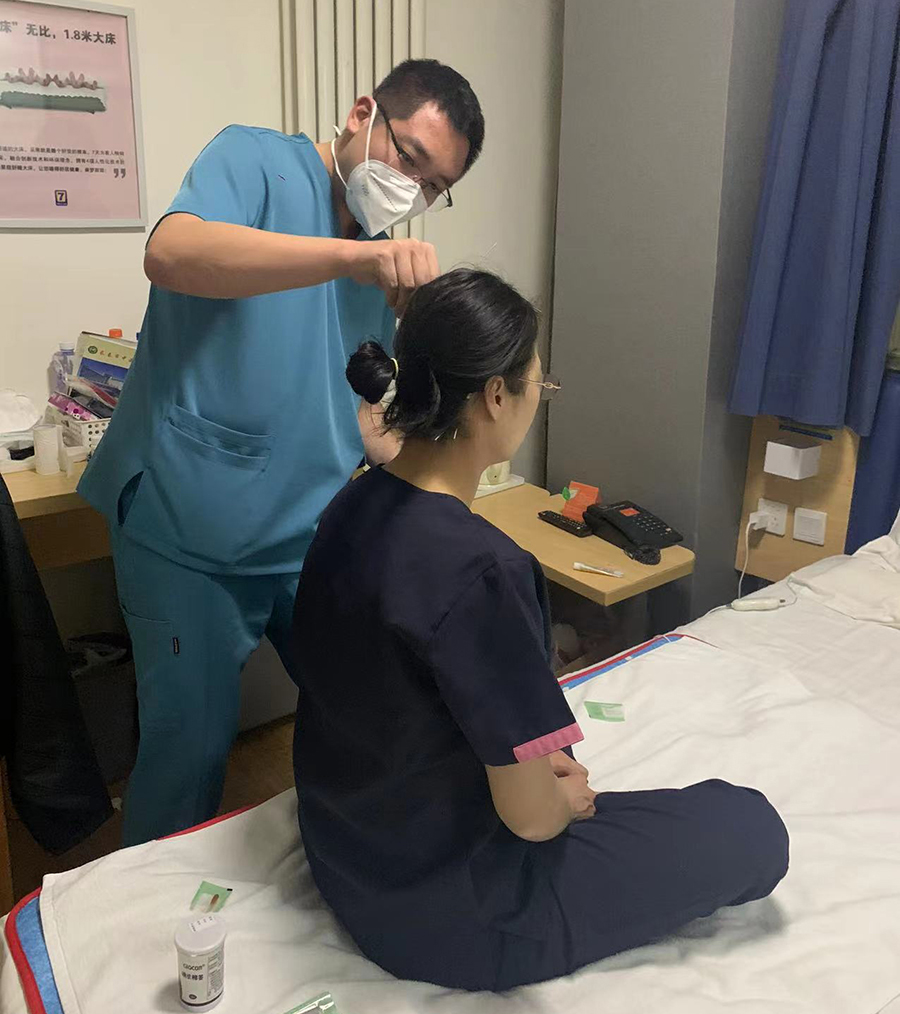 吴丹和24名队员被分配到前进街道。由于任务重,大家常常要凌晨四点多就要起床,六点就要开始采集,持续工作时间长达12个小时。很多队员担心不能及时收到出发的消息,经常把手机设置多点闹钟,几乎不能踏实睡觉。由于得不到充分休息,队伍里年长的李中国医生出现了心脏不适,但他选择服用相关药物继续坚持工作直到完成任务,还有一些队员因为长时间在寒冷的室外工作出现了感冒等症状,但大家也都强忍着身体不适,坚持完成工作任务,无一人掉队。支援过程中,吴丹因睡眠不足致头疼得厉害。医院总部康复科医生牛寅及时帮她诊治。在症状得到缓解后,吴丹继续投入到工作中。
