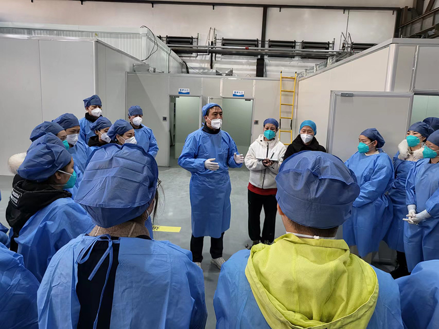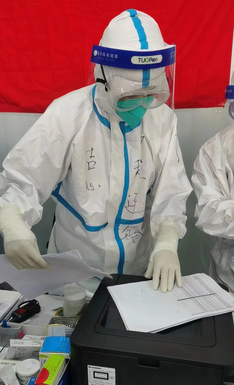 吉林新华医院领队宋国超说:生命重于泰山,疫情就是命令。在卡伦方舱医院1、2号舱,医护工作者们迎难而上。惟其艰难,方显勇毅!所有队员按时出勤,坚守岗位,加班加点工作!身着白衣,心有锦缎,我们奋战一线,共同抗击疫情,一定能打赢这场没有硝烟的战争!