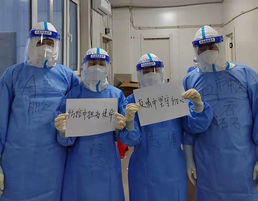 疫情就是命令,防控就是责任,疫情来临,赵鹏积极报名,于3月16日凌晨突然接到院里的紧急支援任务,由于妻子也24小时在岗工作,他只能将还在熟睡的6岁女儿托付给母亲,毅然决然奔赴公主岭方舱隔离点。