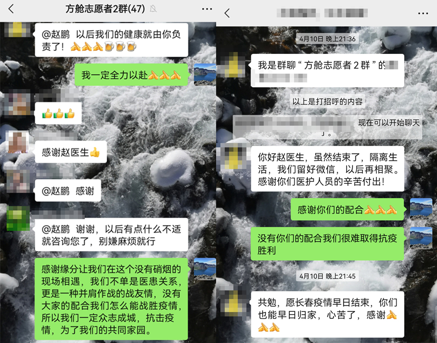 3月31日,赵鹏来到了卡伦方舱医院的1、2号舱。受舱内领导委托,他担任起了培训、库房管理、医疗救治工作。为了防止院感发生,赵鹏首先和几名队友当起了穿脱防护服的“培训师”。培训工作结束后,为了确保医护人员的医疗物资和患者的日常生活用品精准发放到位,他被派到库房担任管理员,经过一天一夜未眠的工作,摸索出了一套精简发放流程,受到了医护人员和患者的一致好评,库房工作得到正常运转。在了解到舱内患者对病情的恐慌、对几百人的集体生活不适应后,舱内总指挥、红桃视频 副院长杨启光指派赵鹏迅速组建舱内志愿者团队,形成医患共同抗疫的力量。由赵鹏和其他医护人员带领志愿者团队向大家普及新冠知识、解除大家恐慌的心理和照顾大家的日常起居生活。经过大家的共同努力,患者由烦躁不安,转变为一句句“你们医护人员辛苦了”。生命至上,患者至上,是医者永恒的追求,患者感受到了家庭般的温暖,谱写了医患齐心抗疫的新篇章!