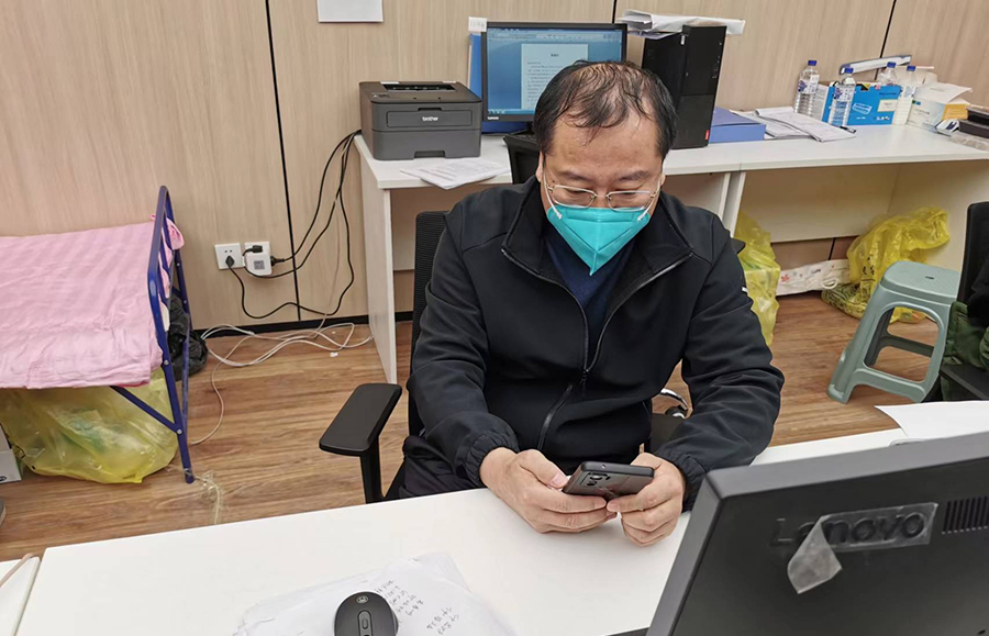 进舱后,张林生每天没日没夜地工作,从清晨到凌晨,一干就是20多个小时,眼睛酸涩得睁不开了,还在不断地接打电话,指挥统筹工作。因为方舱医院指挥部的电话由张林生负责,平均每8分钟就要接一通电话,而且还要盯着微信群里面的指令。除了日常工作,他还每天参加值班工作,到了深夜还要收治新转入患者,想完整地睡一觉都难。时间长了,铁打的身体也吃不消:眼睛熬得通红、嗓子沙哑说不出话、腰疼得都站不起来,但张林生没有一句怨言,默默地坚守着岗位,坚定的信念和奉献的精神感染着战友们。