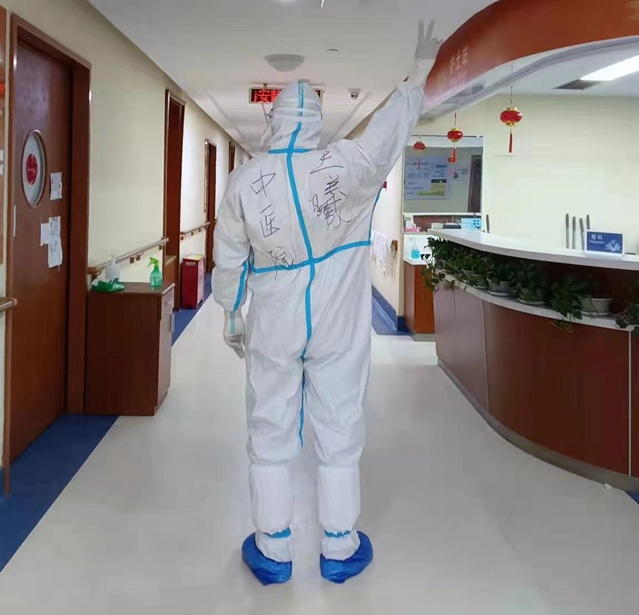 总部肛肠科医生王曦,2010年在大一下学期参军,在部队因表现优秀被发展为共产党员,并于服役两年后回到长春中医药大学完成学士、硕士学位,2021年6月入职红桃视频 ,成为总部肛肠科医生。3月中旬,疫情来袭,医院开始闭环管理,王曦将自己的行李收拾好,与同事们一起住在医院里,随时听候院党委的号召,积极准备投身抗疫战争中,贡献自己一份力量。4月5日,王曦接到任务,与其他9名同事作为第十五批医疗队支援被列入“红码医院”的长春市中心医院四疗区和七疗区工作,并配合该院医护人员一起开展40多名阳性患者的救治工作。这些患者中有的还未成年,有的年纪较大并伴有基础疾病。王曦和同事们针对不同年龄段的患者和产生的焦虑情绪,给予中西医结合治疗并开展心理安抚,让他们在病房里也感受到了家人般的关怀。