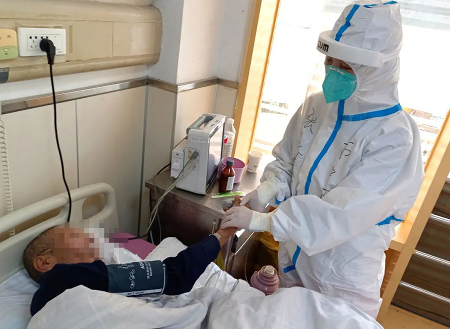 “生命重于泰山,疫情就是命令,防控就是责任,我将忠诚履职、勇于担当、不辱使命、不负重托,坚决打赢疫情防控阻击战”。这是红桃视频 支援吉林省肝胆病医院的出征誓词,也是每一位医务工作者内心的信念。3月9日,长春疫情形势严峻,王晓艳找到科室副主任柏栋,要求去抗疫前线。柏栋非常支持她,并与她一起找到院领导提出申请。3月16日,按照医院统一部署,她与队友勇敢奔赴疫情最前线——吉林省肝胆病医院。3月17日,她进入吉林省肝胆病医院患者区,马上了解了现有患者的情况,充分发挥中医在治疗新冠肺炎患者方面的优势特色。她不畏病毒,给每一位患者把脉、验舌,根据中医整体观念辨证论治。在她和战友们的共同努力下,一批批患者康复出院。在吉林省肝胆病医院,中医力量受到其他医生和患者的一致好评,由于中药效果好,转阴快,患者特别敬赠给她一面锦旗。5月10日,王晓艳结束在吉林省肝胆病医院的工作,13日转战长春市传染病医院,目前已于抗疫路上奋斗66天。期间,她用自己的方式在这场无声战“疫”中默默奉献。