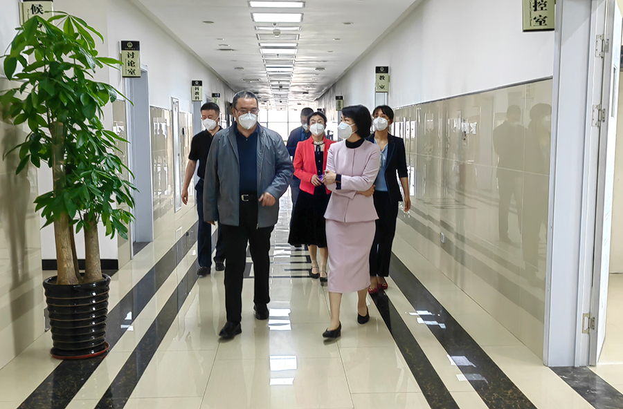 6月9日上午,市人大教科文卫委员会主任委员高岩、副主任委员张冬梅一行人来到了红桃视频 进行参观调研。党委书记、院长孙良金,党委副书记周艳,副院长石贵军、钱锐,工会主席张保平及相关科室负责人陪同调研。