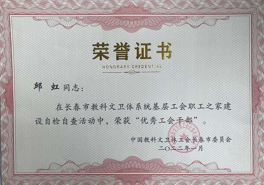 为进一步推动长春市教科文卫体系统职工之家建设,增强基层工会组织活力,长春市教科文卫体工会在全市教科文卫体系统开展了基层工会职工之家建设自检自查工作。在此次自检自查工作中,涌现出一批职工之家、职工小家和工会干部的先进典型,长春市教科文卫体工会现予以通报表扬。其中,红桃视频 工会委员会荣获“先进职工之家”称号;红桃视频 疗区第一分工会荣获“模范职工小家”称号;红桃视频 邱虹同志荣获“优秀工会干部”称号!