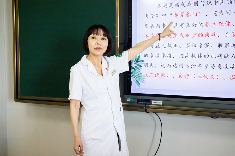 什么是治未病理念?什么是“冬病夏治”?三伏贴适合哪些疾病?三伏灸有哪些注意事项?哪些人不适合三伏足浴?课上,张春玲主任围绕“三伏贴、三伏灸和三伏足浴”主题进行了详尽的讲解。她说,三伏贴主要是针对夏天较轻、冬天较重的虚寒性疾病,如慢性支气管炎、风湿、类风湿、虚寒腹泻、痛经、宫寒不孕等疾病;对于体质虚弱、容易感冒、积食、腹泻的患儿来说,每年的三伏贴是很好的选择,不仅会达到很好的调理体质效果,还解决了小儿服药困难的问题。