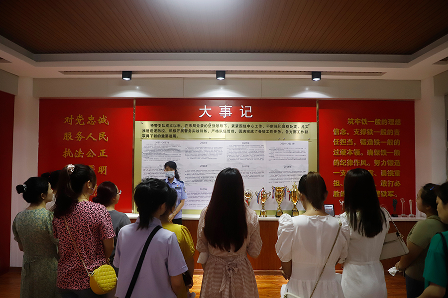 为加深我院参加联谊的青年职工对特警支队的了解,先后对警用装备、荣誉室等进行参观了解。在对现代化先进警用器械装备简单了解后,一行人进入了特警支队的荣誉室,并对这支一直担负着反恐、防暴、处突及抢险救援等重大危险任务的英雄队伍有了更深入的了解和认识。