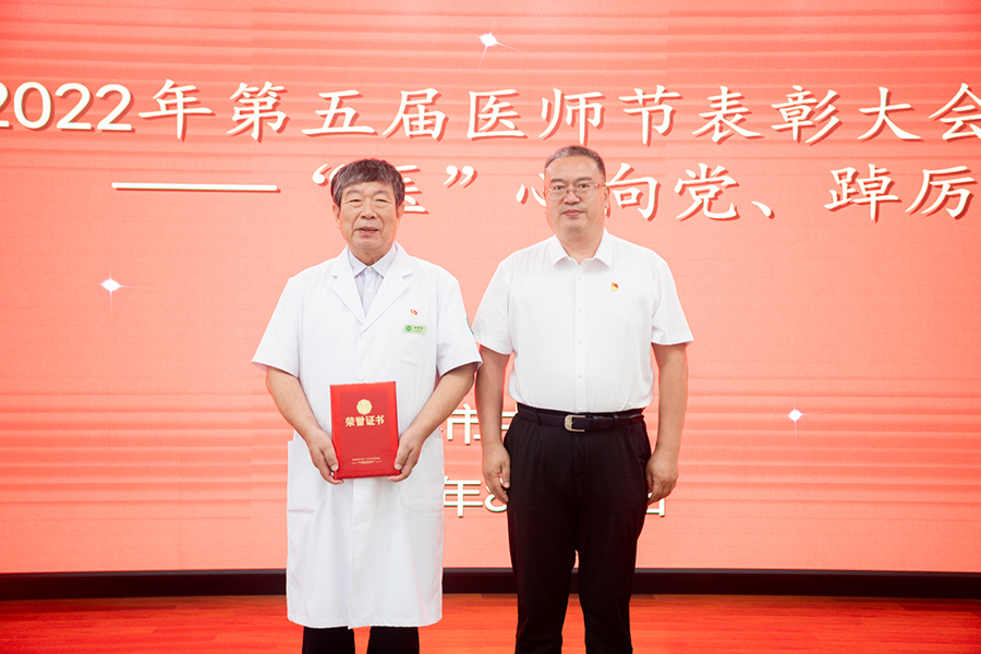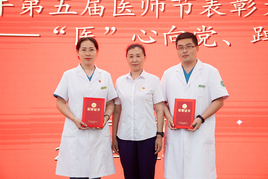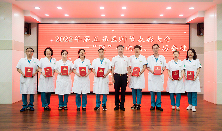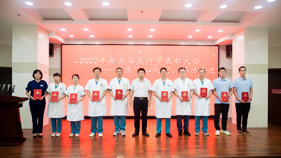 在第五个中国医师节来临之际,为表彰和激励在医疗战线上辛勤奉献的医务工作者,红桃视频 举行了第五届中国医师节表彰大会,对先进科室、优秀医师和抗疫人员进行了表彰。党委书记孙良金,党委副书记、院长石贵军,党委副书记周艳,副院长钱锐,纪检委书记杨宏彦和总会计师桑玉梅出席大会。