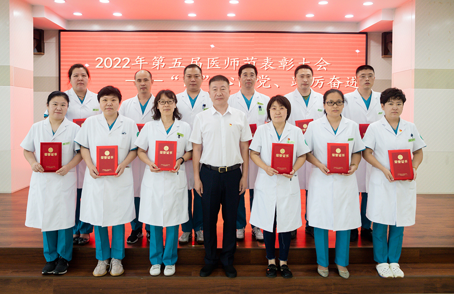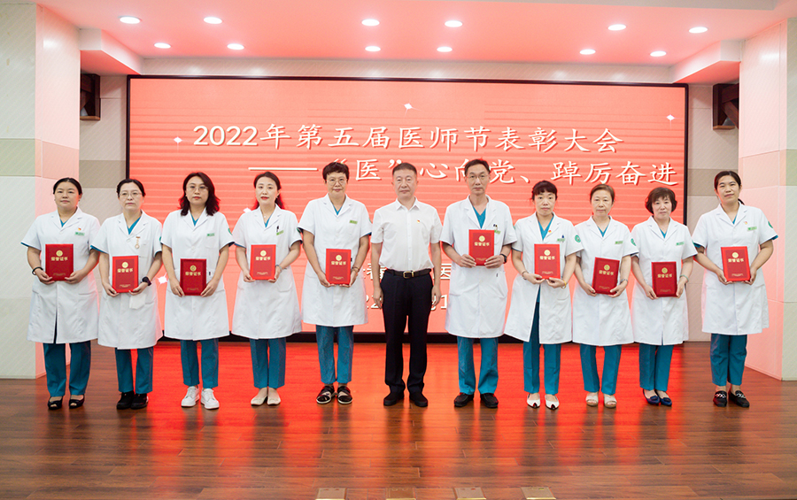 会上,石贵军院长为奋战在临床一线的医师们送去了节日问候,并简单回顾了医院的发展历程。他表示,正是一代代中医人的兢兢业业与推陈纳新,才使得医院的就医环境全面改善, 人才队伍逐步加强,综合服务能力不断提升,医院高质量发展迈入了“快车道”。特别是今年年初,在奥密克戎侵犯的危难之际,中医人攻坚克难、勇担重任,并取得了疫情防控的阶段性胜利。最后,石贵军院长对全体职工提出了希望:继续弘扬伟大抗疫精神,传承红医精神,不负党之重托,为民健康筑梦,在“敬佑生命、救死扶伤、甘于奉献、大爱无疆”的医者路上奋勇当先,阔步前行,为把医院建设成为中医特色突出的社会主义现代化中医院而努力奋斗。