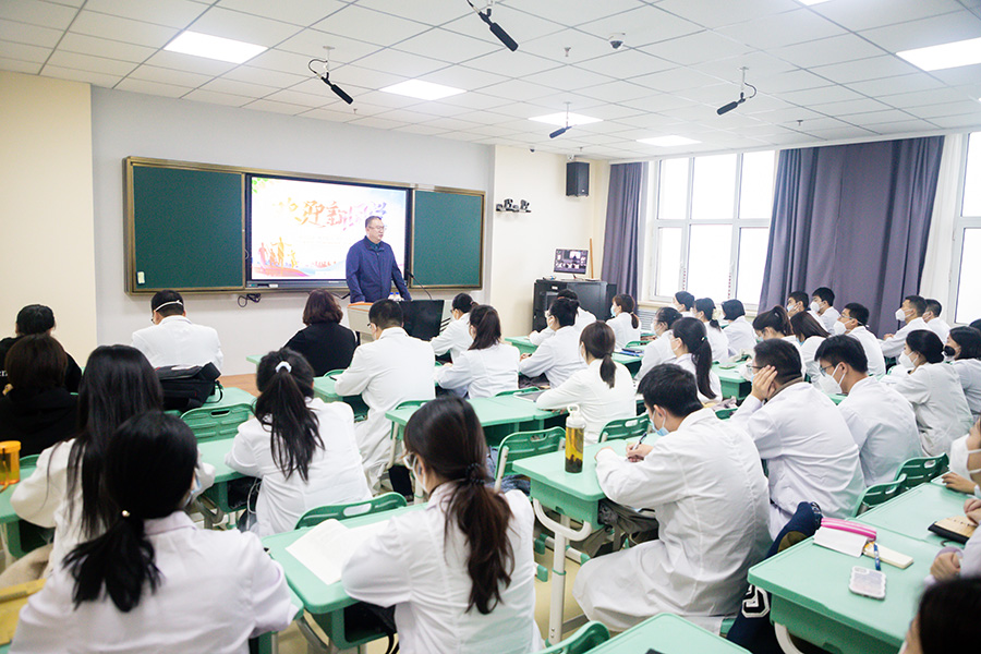 对于即将开启新的学习、科研生涯的同学们,孙良金书记送上了诚挚的祝福和问候。他表示,研究生做为高层次人才,是国家发展、社会进步的重要基石,也是中医药未来创新发展的重要力量。为了让新同学对红桃视频 及中医药事业的发展有更深入的了解,孙良金书记首先带领同学们回顾了医院的历史沿革,对医院的文化积淀和专业特色发展进行了具体介绍。同时,他还讲述了在疫情大考中,中医人承担历史重任,以守正创新的科研精神,发挥出中医药独特的优势,圆满完成一次又一次的抗疫任务。这也让同学们在实例中感受到了什么是中国精神、中国力量,也体会到中国在危机变局中展现出来的大国担当与风范。
