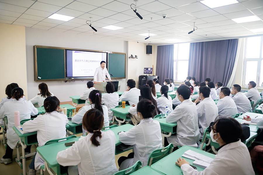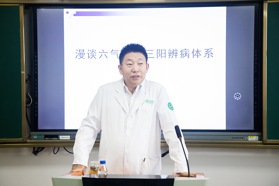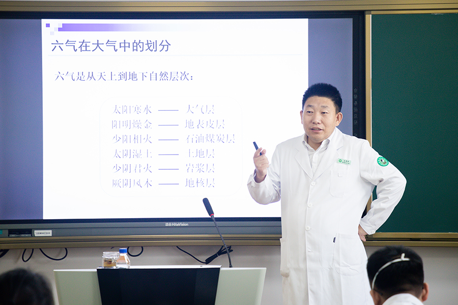 为了让学生深入了解中医文化是在中华传统文化指导下并应用于临床实践的一种实用文化,加强他们对新时代下中医药文化创新发展的内在价值的认同和肯定,石贵军院长介绍了一种中医理论的全新研究方向——“六气三阴三阳”的辨病理论体系。作为集合了中医理论中伤寒论六病体系、五运六气和升降理论体系三大体系的病症辨识诊疗方法,石贵军院长简要讲述了此种思维模式引领下的病症动态变化成因机理、病证辨识和遣方用药,同时辅助以生动的案例来说明这种方法对防范疾病的重要作用。同学们也在内容丰富精彩的一课中,对“六气三阴三阳”的辨病理论体系有了基础体会,并表示受益匪浅。