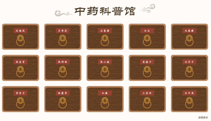 以健康教育实践基地为基础,藉由互联网覆盖率广、拓展速度快的特点,打造中医药文化传播平台,一个集知识性、科学性、趣味性于一体的专业平台,16个线上展馆涵盖了极尽丰富的中药知识、中医理念、医药科普、养生理论、杏林典故等内容。“线上展馆”打破时间与空间的束缚,以形象、生动、活泼的形式展现中医文化之美,通过图、文、音频、视频等多种方式,让中药文化生动起来,让中医养生理念深入人心。