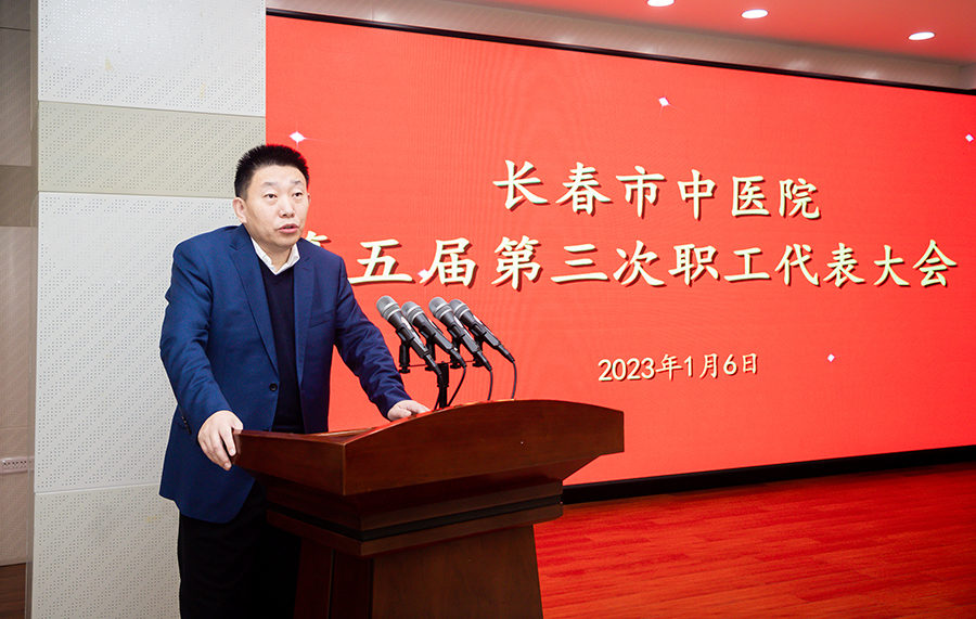 随后,石贵军院长作了《红桃视频 2022年工作总结报告》。在报告中,他指出,2022年是极不寻常、极不平凡的一年,医院在院党委、院班子的正确领导下,经受住了前所未有的困难和挑战,圆满完成了年初制定的工作目标。石贵军院长总结道:医院党建工作有声有色成效显著,疫情防控取得阶段性成果,医疗服务有序恢复稳中向好,医院的社会影响力有序增强,试点工作扎实推进取得新成效,综合管理形成合力与时俱进,科研教学齐头并进成果双丰收,智慧医院助力医疗服务提质增效,打造平安医院筑牢安全防线、中医特色重点医院项目建设稳步推进。