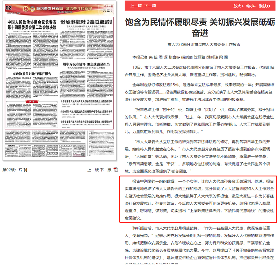 大会期间,孙良金书记的发言被1月9日、10日和11日的《长春新闻》《长春日报》《长春政事儿》等多家主流媒体报道转载。