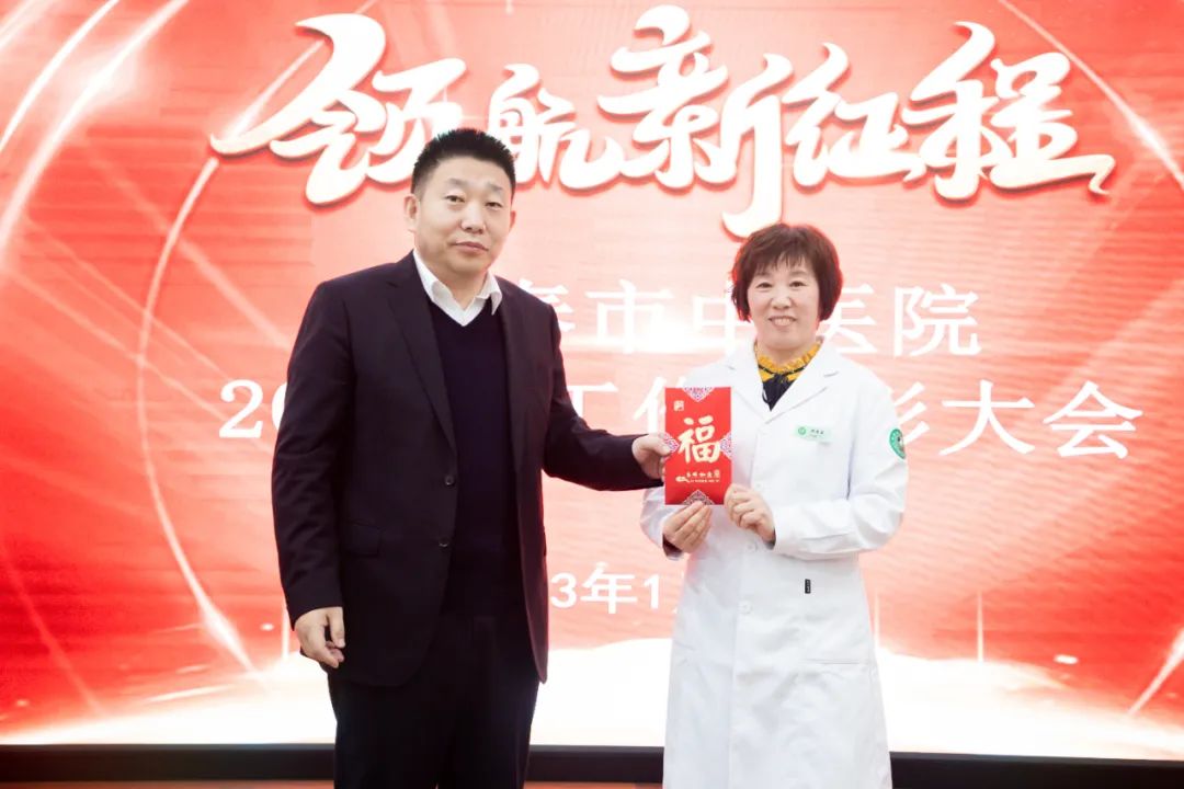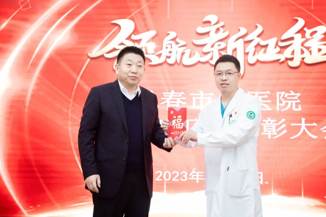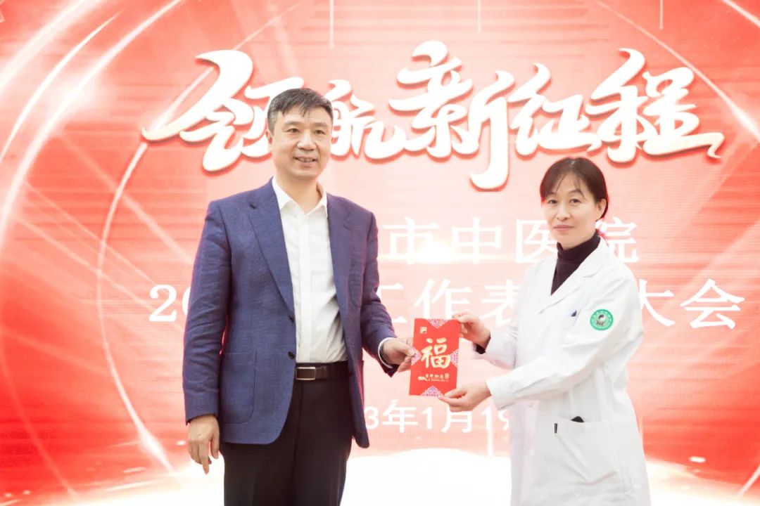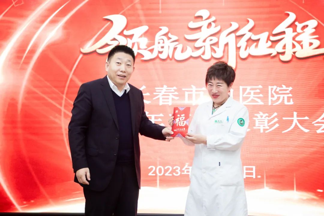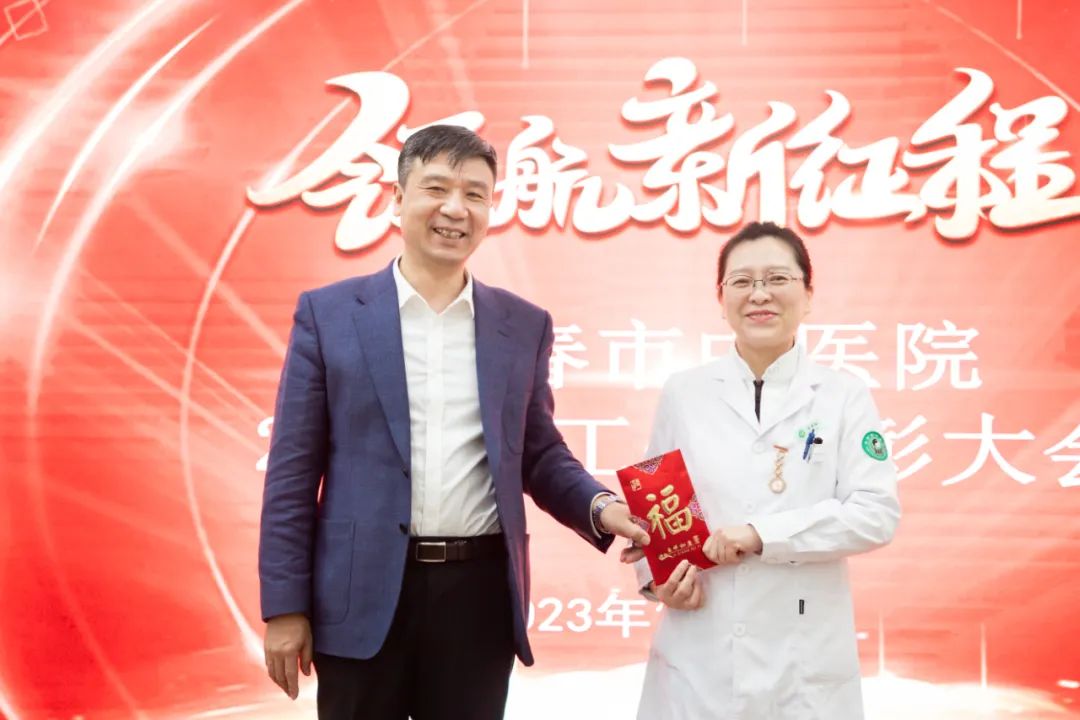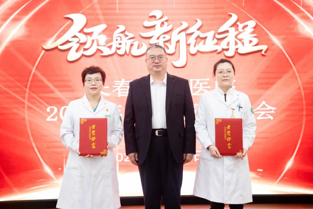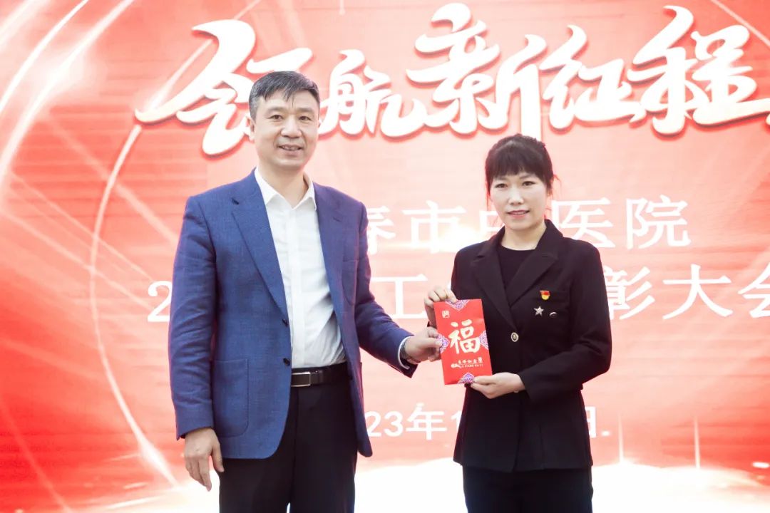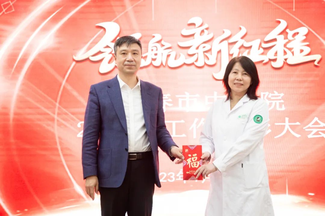 钱锐副院长、曹亚丽副院长为“2022年度医院优秀职工”代表颁奖