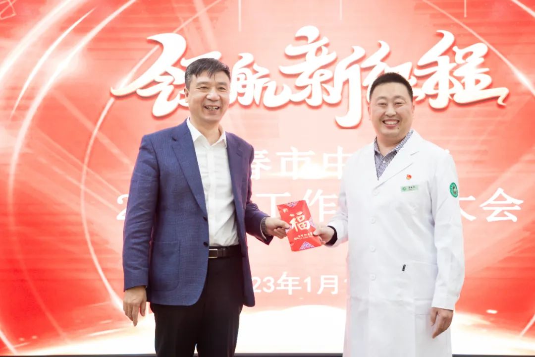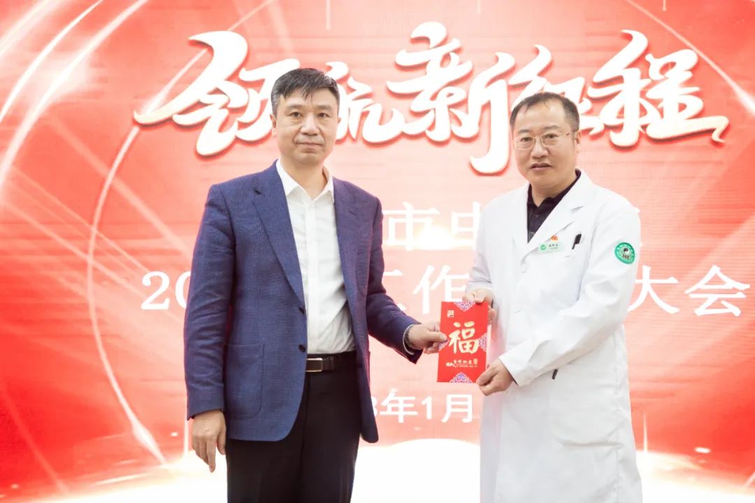 会上,石贵军院长作了“奋斗有我 为梦前行”主题讲话。他代表院班子,向全院医护人员及职工家属送上节日的问候和祝福;向广大职工一年来迎难而上、抗击疫情,圆满完成了各项工作表示感谢;向三年来坚守初心、勇担使命、并肩战疫的兄弟姐妹们致以崇高的敬意。同时,他希望受到表彰的团队和个人把荣誉转化为责任和使命,继续弘扬中医院精神,更加紧密地团结起来,在奋斗中汲取力量,向着新的奋斗目标出发。