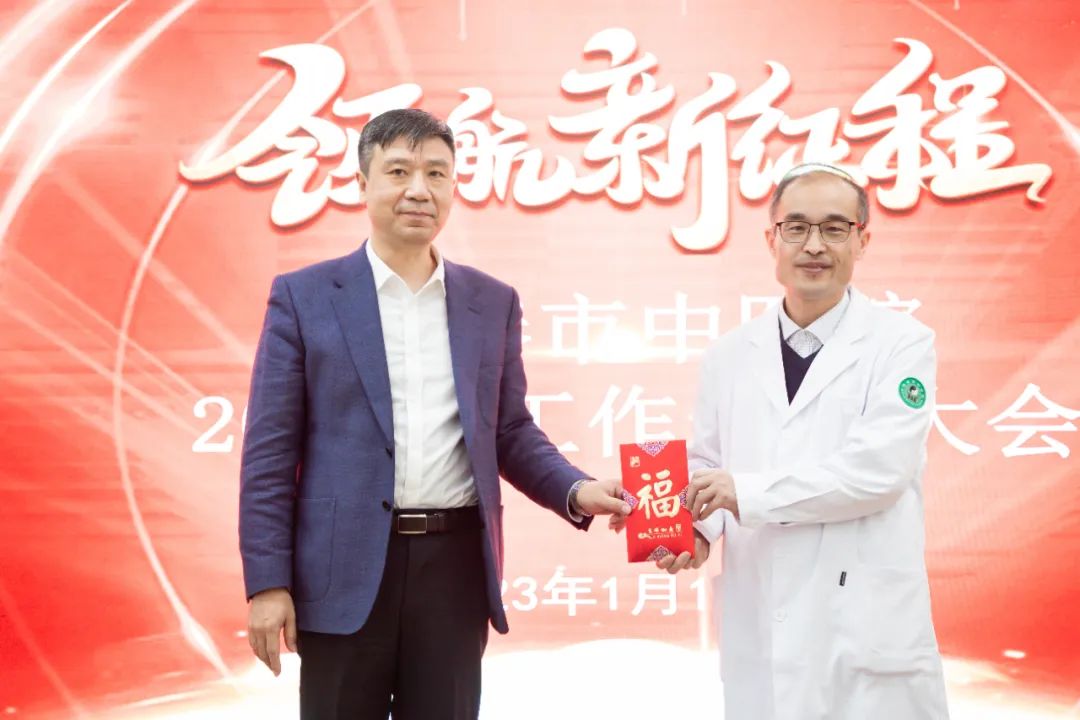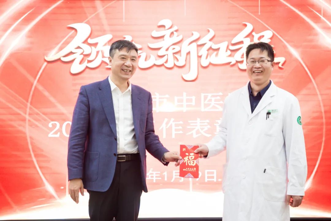 2022年3月初,红桃视频 全体职工闻令而动,无畏逆行,攻坚克难,为全面打赢抗疫阻击战贡献着中医智慧、中医力量。孙良金书记为荣获“2022年度抗疫团队”颁奖。