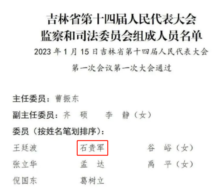 【喜报】我院党委副书记、院长石贵军当选吉林省第十四届人民代表大会监察和司法委员会委员