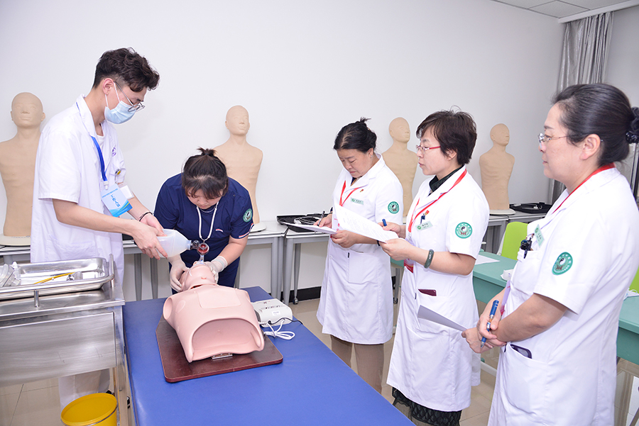 据了解,本次医师急救技能大赛内容涵盖心肺复苏术、电除颤、气管插管、针灸等内容。医院各临床科室积极响应,踊跃报名,共有23名医生参加比赛。为确保比赛在赛出高质量、高水平,医院抽调三个院部9名科室科主任担任评委。