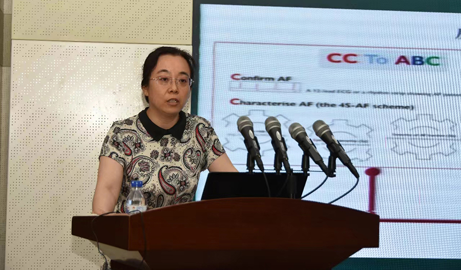 ▲长春市人民医院心内科主任林华带来了以《房颤急性期处理相关问题》为主题的讲解