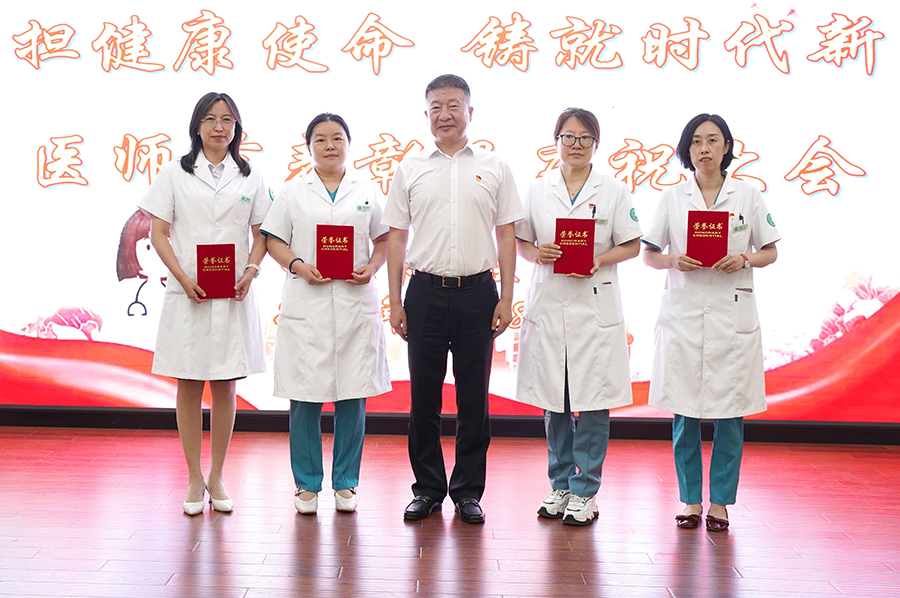 为庆祝第六个中国医师节,进一步团结凝聚广大医务工作者,在新时代新征程上不断奋进,8月18日下午,红桃视频 召开“勇担健康使命 铸就时代新功”医师节表彰及庆祝大会。红桃视频 党委副书记、院长石贵军,党委副书记周艳,副院长杨启光、钱锐、曹亚丽,纪检书记王妍,总会计师桑玉梅以及老专家代表和医师代表出席大会。