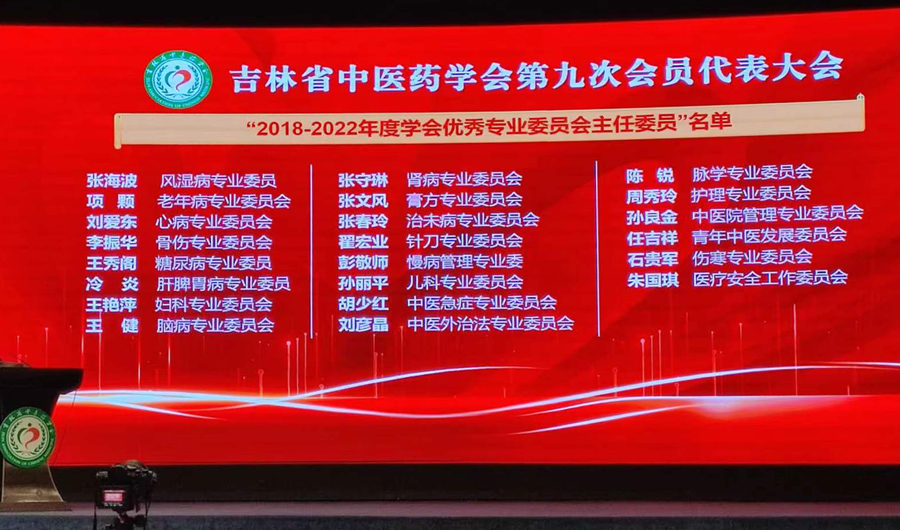 近日,吉林省中医药学会第九次会员代表大会在长春召开,会议选举产生了吉林省中医药学会第九届理事会。会上,红桃视频 职工荣获多项殊荣。红桃视频 党委副书记、院长石贵军当选吉林省中医药学会副会长,全国名中医、红桃视频 赵继福教授被聘任为“吉林省中医药学会第九届理事会高级顾问”。