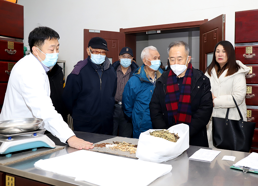 在杨启光副院长的陪同下,刘京梅处长和老干部先后参观了煎药室、饮片药房、治未病中心和实训中心等地。杨启光副院长详细介绍了医院的中医药特色文化和中医适宜技术。