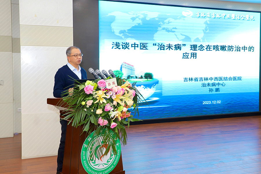 ▲全国中医临床优秀人才、吉林省吉林中西医结合医院治未病中心主任孙鹏,以《浅谈中医“治未病”理念在咳嗽防治中的应用》为题,就中医治未病理论探讨疾病防治前移的重要意义。