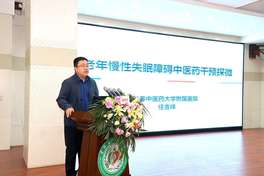 ▲青年岐黄学者、长春中医药大学附属医院副院长任吉祥,以《老年慢性失眠障碍中医药干预探微》为主题,分享了中医适宜技术在治疗老年慢性失眠障碍中的临床实际应用。