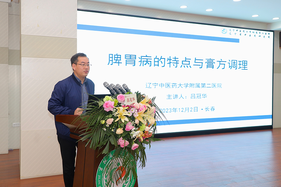 ▲全国中医临床优秀人才、辽宁中医药大学附属第二医院脾胃肝胆科主任吕冠华,围绕中医升降理论详细讲述了《脾胃病的特点与膏方调理》。