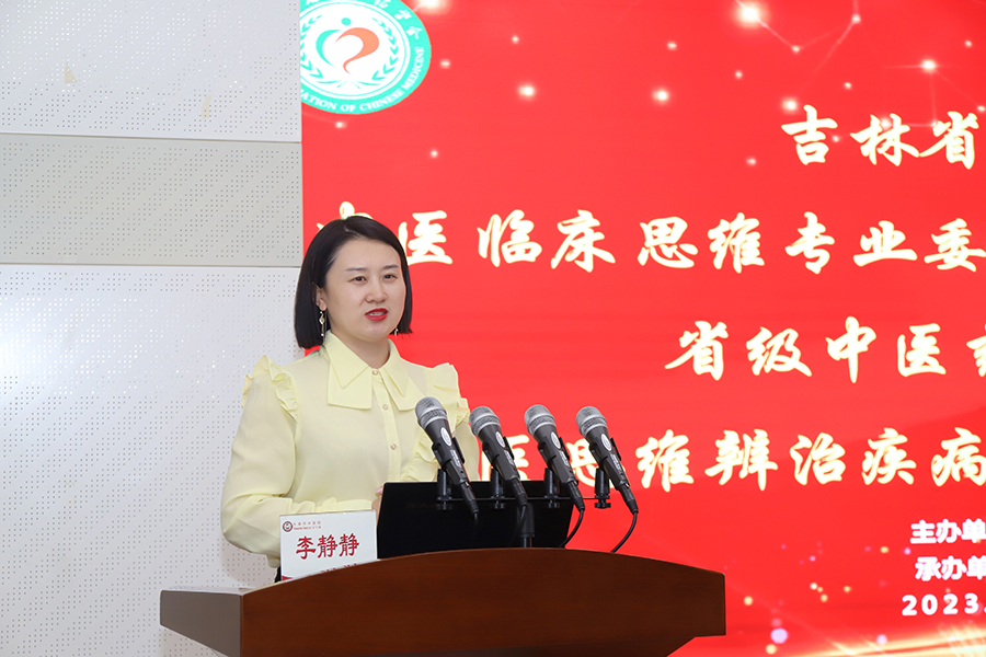 李静静秘书长首先对几年来,吉林省中医药学会中医临床思维专业委员会在工作中取得的丰硕成果和各项荣誉表示祝贺。她表示,在新时代的背景下,大家要紧抓机遇,传承和发扬中医临床思维,并与现代医学相结合,推动中医临床事业创新和发展,不断加强中医临床思维的培训和教育,提高中医人的中医临床思维能力,为中医药事业发展提供更多优秀的人才,更好地守护人民群众的身体健康。