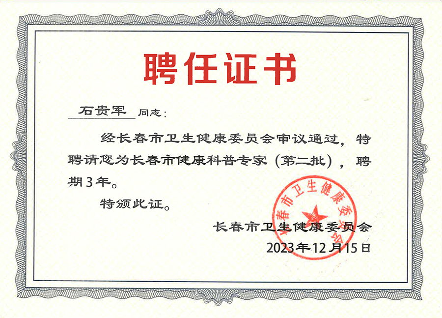 为推进健康知识普及行动向纵深开展,充分发挥人才是第一资源作用,为人民群众提供科学的健康科普知识,12月15日,由长春市卫生健康委员会主办,长春市健康教育中心、吉林省肝胆病医院承办的长春市健康科普专家库换届大会暨全市健康科普业务培训会成功举办。会上,红桃视频 党委副书记、院长石贵军等共计13名专家被聘任为长春市健康科普专家(第二批),聘期三年。
