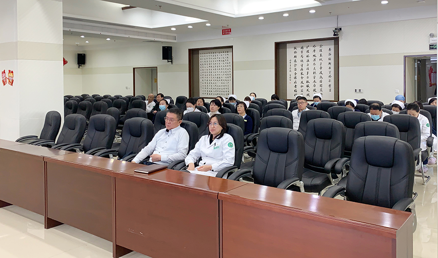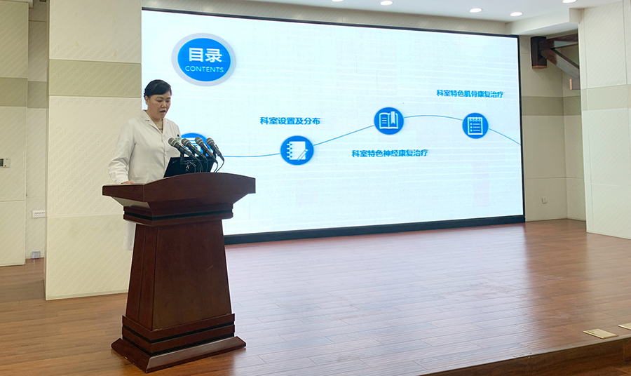 随后,在曹亚丽副院长的陪同下,姜哲三书记一行参加了我院每周例行的学术交流大讲堂。作为主讲人,顾树红主任向姜哲三书记等介绍了康复科在神经康复、肌肉康复上的特色疗法,以及“醒脑开窍”针法的应用情况。
