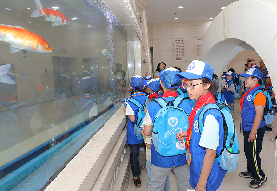 “同学们好,我是此次实践活动的讲解员,请跟我来……”随着讲解员的引导,医院大厅内蕴藏的中医元素逐渐展现。有代表“天地合气、生命万物”的地标绘画,有象征阴阳交融、医患鱼水的鱼缸墙,有如星辰般神秘的“河图”“洛书”。小记者们聚精会神地聆听讲解员的解说,时而点头表示理解,时而举手提问,互动频繁,沉浸在这场中医药文化的盛宴中。