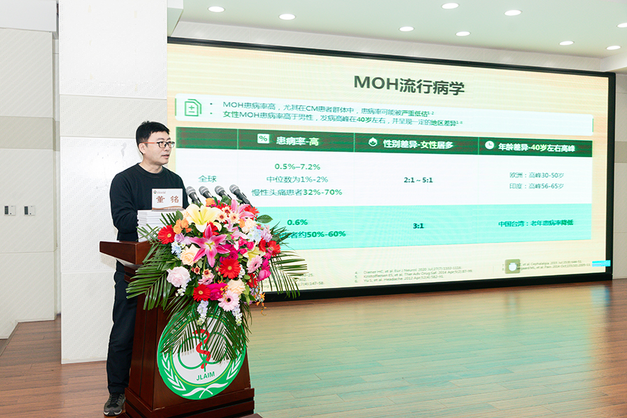 ▲吉林大学白求恩第一医院神经内科主任董铭分享了《药物过量性头痛的识别和治疗建议》的最新进展及理念。