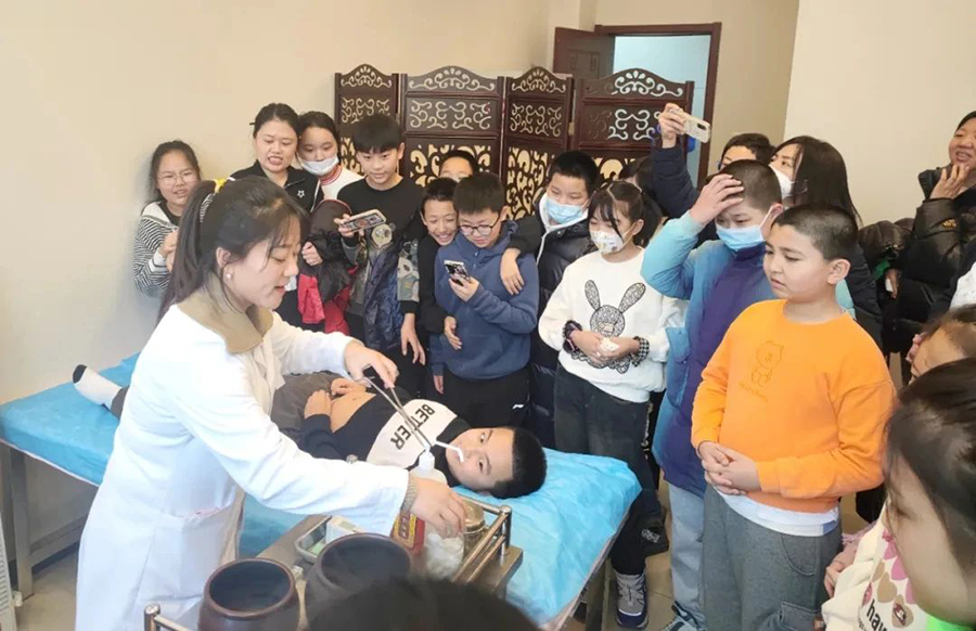 校园主战场。作为长春市中小学生健康教育实践基地,医院先后在朝阳实验小学、长春市文庙小学、华泽小学、汽开小学、公主岭小学等5所学校打造中医药健康文化长廊,将中医药健康知识以展板、图书、模型等多种形式进行展现,鼓励孩子们在体验中养成健康好习惯。